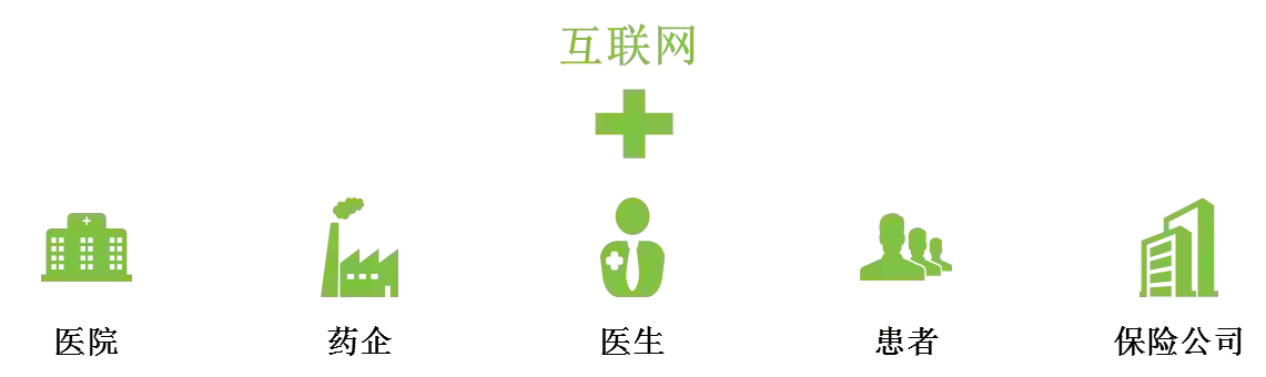 • 从医疗主体的角度看,互联网医疗是互联网同医生、患者、药企、保险公司、医院这五大主体的结合。