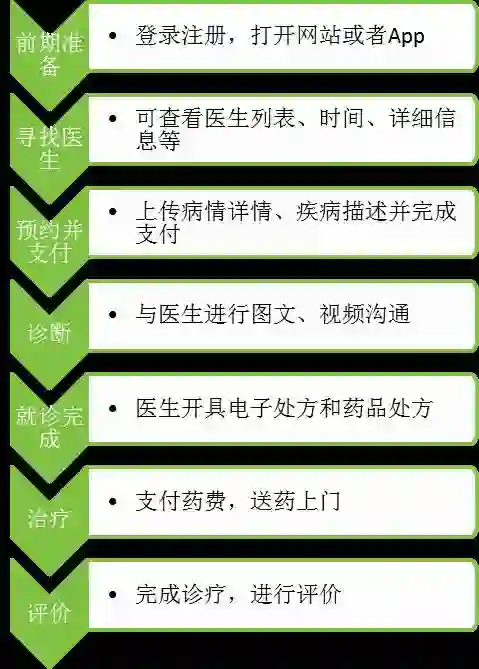 • 互联网医院。互联网医院相对于在线问诊更进一步,进入到在线诊疗环节。