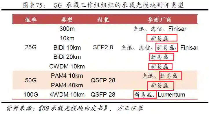 A股市场主要玩家有中际旭创、光迅科技、新易盛。