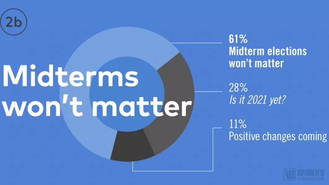 关于中期选举对未来医疗体系的影响,61%的受访者认为中期选举不会对医疗体系产生影响,11%的受访者认为中期选举会带来积极影响,剩余28%的受访者则表示现在判断还为时尚早。