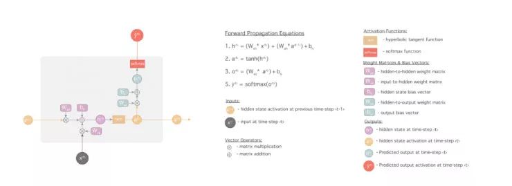 在之前的文章中,我们介绍了 RNN 的基本结构并将其按时间序列展开成 Cells 循环链,称为 RNN cells。下面,我们将揭示单个 RNN Cell 的内部结构和前向传播计算过程。