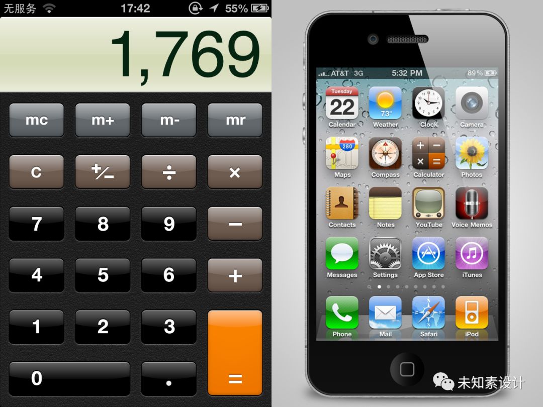 早期UI设计都是拟物化设计 ,其风格特点:模拟真实物体的材质、质感、细节、光亮等,交互也模拟现实中的交互方式,学习成本低,传达丰富的人性化感情。缺点:拟物化本身就是约束,会限制功能本身的设计。