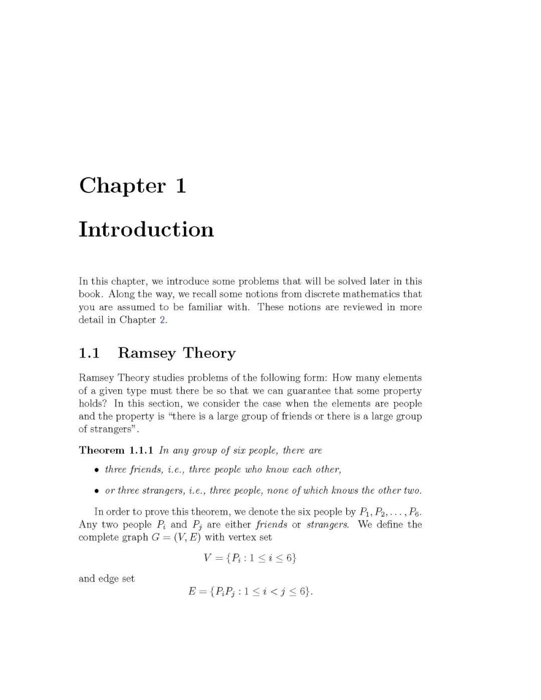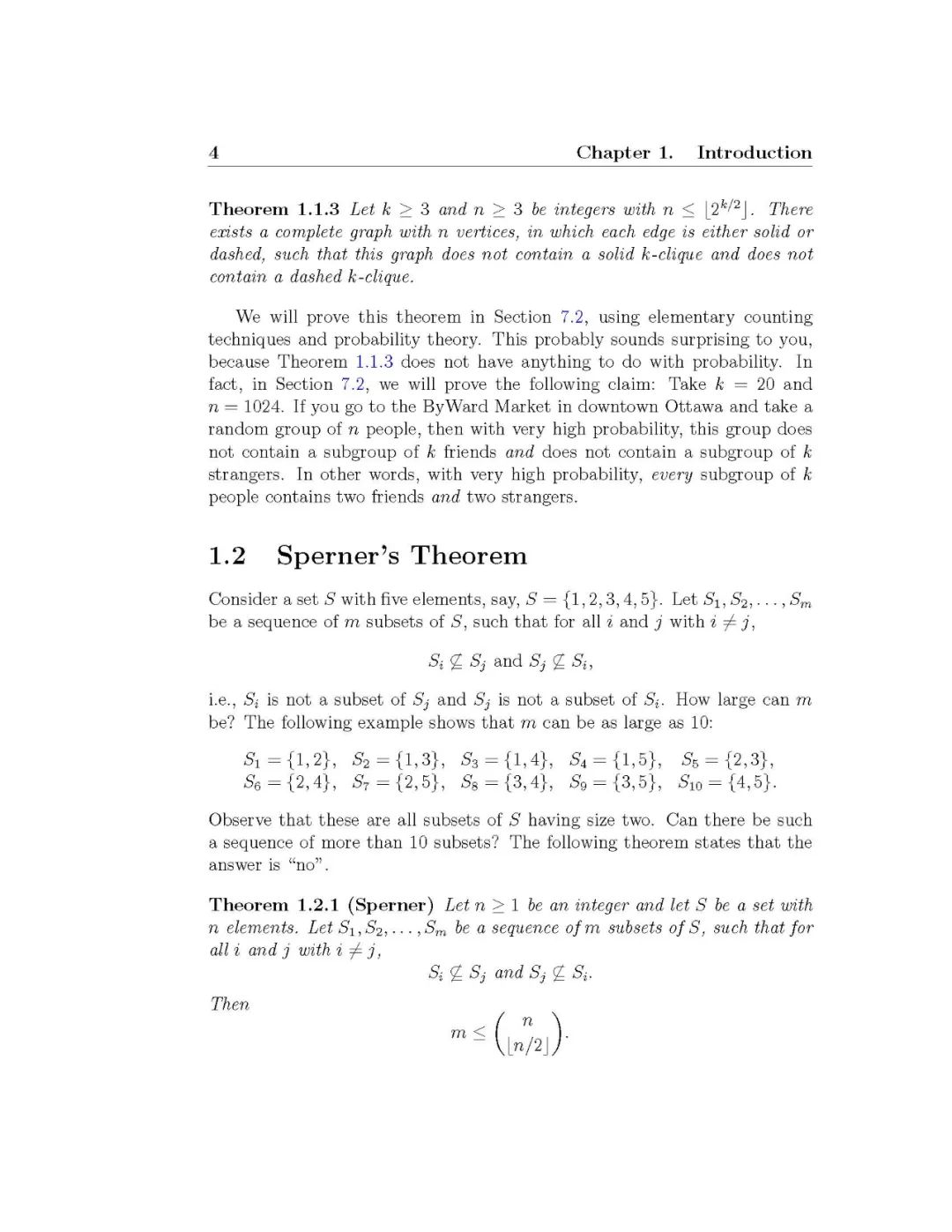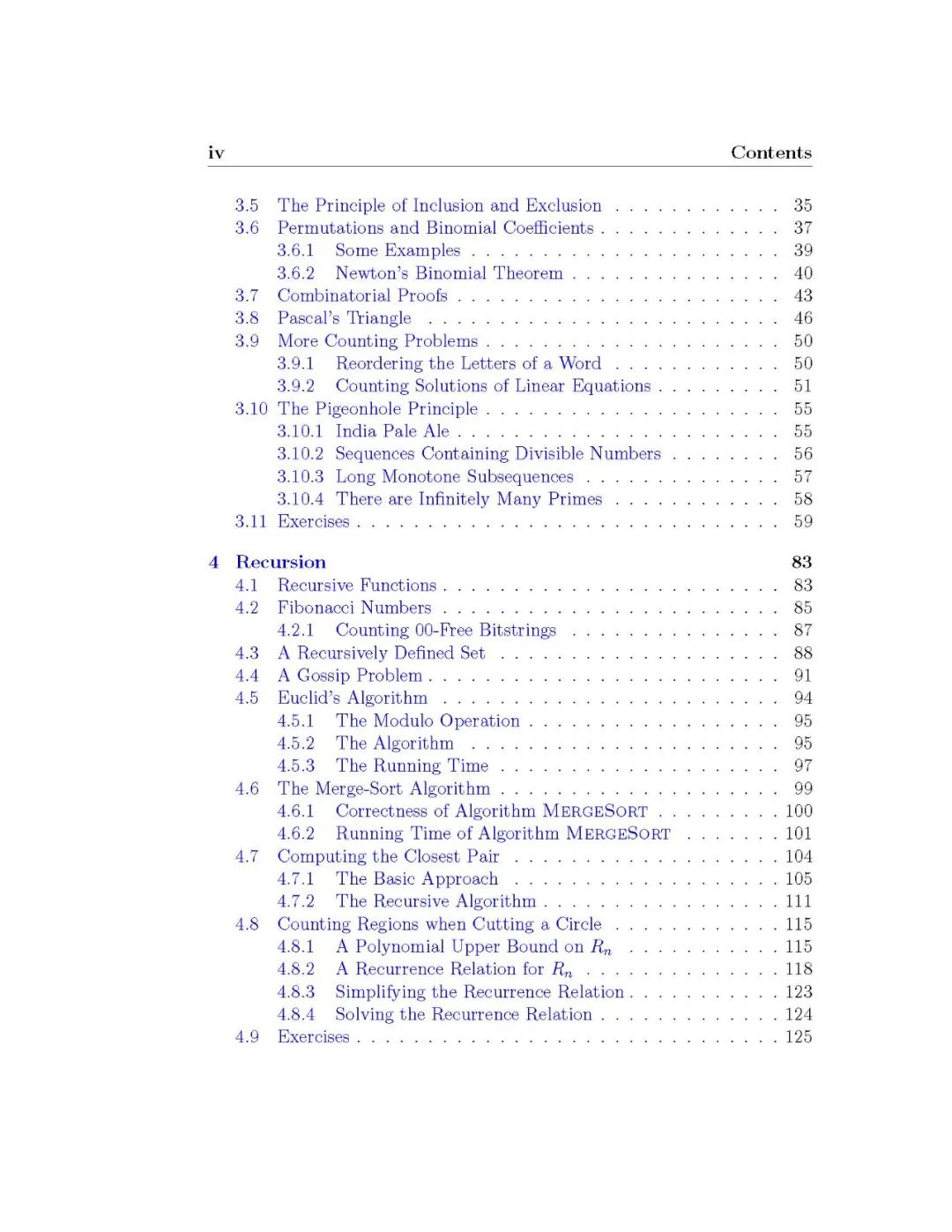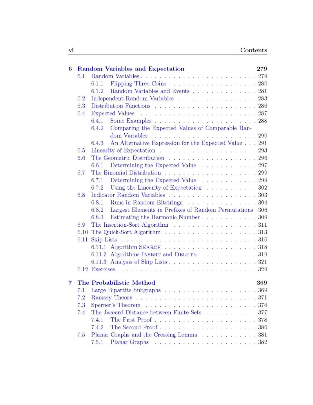 这是一本免费的面向计算机科学学生的离散结构本科课程教材,我从2013年秋季学期开始在卡尔顿大学教授。本课程为二年级课程COMP 2804(离散结构II)。学生必须修过COMP 1805(离散结构I),涵盖了数学推理、基本证明技巧、集合、函数、关系、基本图论、渐近符号和可数性。在一个12周的学期中,每周有3个小时的课,我涵盖了这本书的大部分材料,除了第二章,它已经包含在里面了,以便学生可以复习COMP 1805的材料。