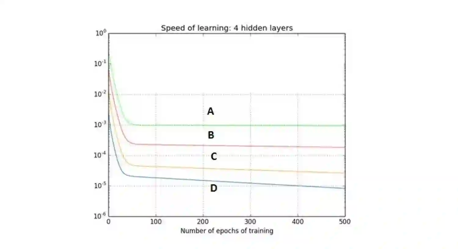 A 第一隐藏层对应D,第二隐藏层对应C,第三隐藏层对应B,第四隐藏层对应A