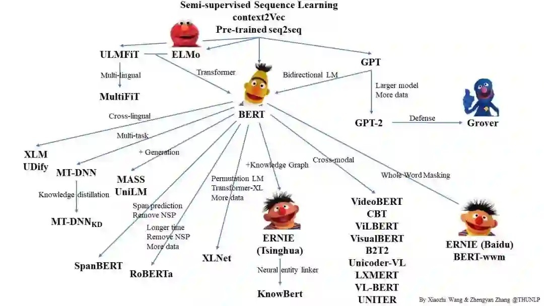 如果你对这些模型的名字感到好奇——本质上,NLP的研究人员对芝麻街的角色非常着迷。我们可以把这一切的开始归咎于ELMo的论文,这使得后来的模型如BERT和ERNIE成为必然。我急切地等待一个BIGBIRD模型-然后我们还可以称他叫压缩版为SMALLBIRD。。。