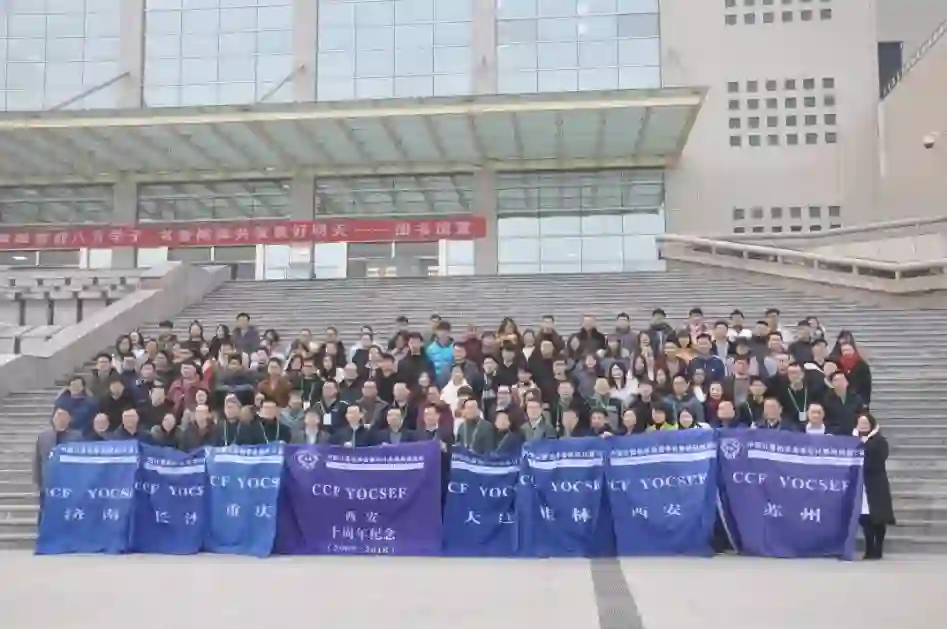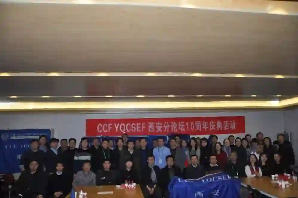 本次大会由西安工程大学计算机科学学院承办。陕西省各高校学者、企业代表以及CCF YOCSEF兄弟分论坛代表近百名各界人士欢聚一堂,共祝CCF YOCSEF西安分论坛十周年诞辰。西安工程大学校长高岭教授、CCF YOCSEF总部AC林俊宇、吴国斌、李文珏、CCF YOCSEF西安的7位历任主席郑庆华教授、苗启广、於志文、陈晓江、段宗涛、黑新宏、公茂果、西安工程大学科技处朱耀麟副处长、西安工程大学计算机科学学院党委王雅慧书记、院长薛涛教授、副院长陈金广、石美红、朱欣娟,以及16个YOCSEF兄弟分论坛代表满君丰、朱振方、杨德刚、杨胜利、王新年、梁志、卢昱明、张志昌、霍雷刚、郝天永、柯晓华、王胜科、凌从礼、韩琦、杨德刚、秦品乐等列席本次大会。