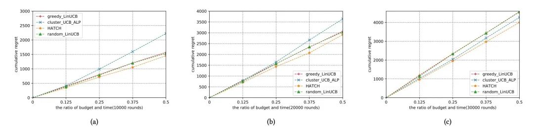 实验结果说明本文提出的 HATCH 能够得到低的累计遗憾。