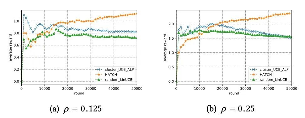 从图中看出,在不同的实验设置下,HATCH 均能达到最佳的平均 CTR。