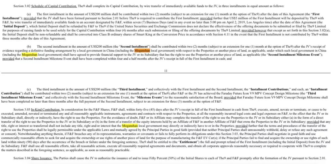 九城今年3月提交给SEC的文件,投资FF的合作条款、涉及莫干山块地的相关内容