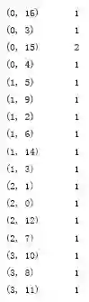 在输出中,括号中的第一个数字是文本的序号,第2个数字是词的序号(注意词的序号是基于所有的文档的),第三个数字就是词频。