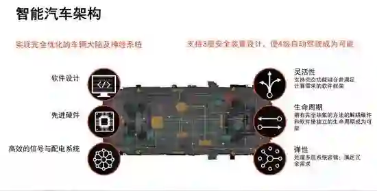 在当前的汽车架构下已经有了车载信息服务系统,而再增加传感器模块,增加线路等方式增加主动安全系统这样的方式已经使汽车架构不堪重负。未来高级自动驾驶时代下,当下的汽车架构完全不能胜任未来更复杂的数据结构、更高效的数据传输以及海量数据运算。