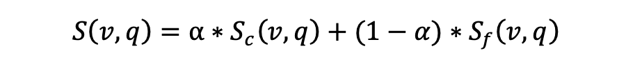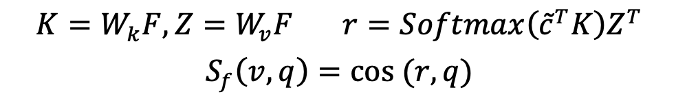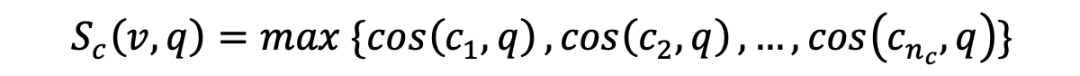 在部分相关的检索任务中,若文本与视频中的某一片段相关,则认为文本与该视频相关。因此作者首先计算视频段特征序列 C 中每个片段与文本特征表示 q 之间的相似度,并将文本与片段最大的相似度作为文本与整个视频的相似度。对于相似度取值,作者认为取平均值会使得相关片段信息被大部分的低相似度片段模糊,所以取最大值作为视频片段尺度相似度 。此外,作者将相似度最高的视频段特征 作为关键视频段特征。