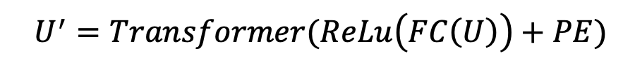 在对视频初始特征向量进行片段尺度编码前,作者将其降采样为长度为 的特征 ,以减少初始特征序列的长度,并有助于降低编码模块的计算复杂度。之后,将降采样后的特征 U 使用全连接层进行特征降维后,输入到一层的标准 Transformer 中捕捉其上下文信息: