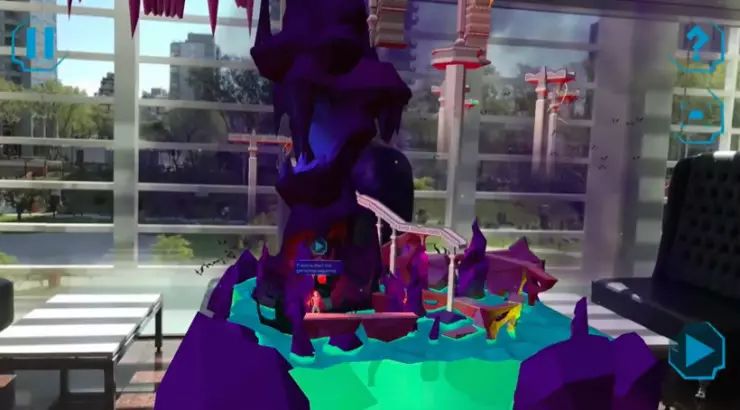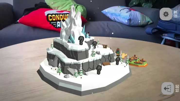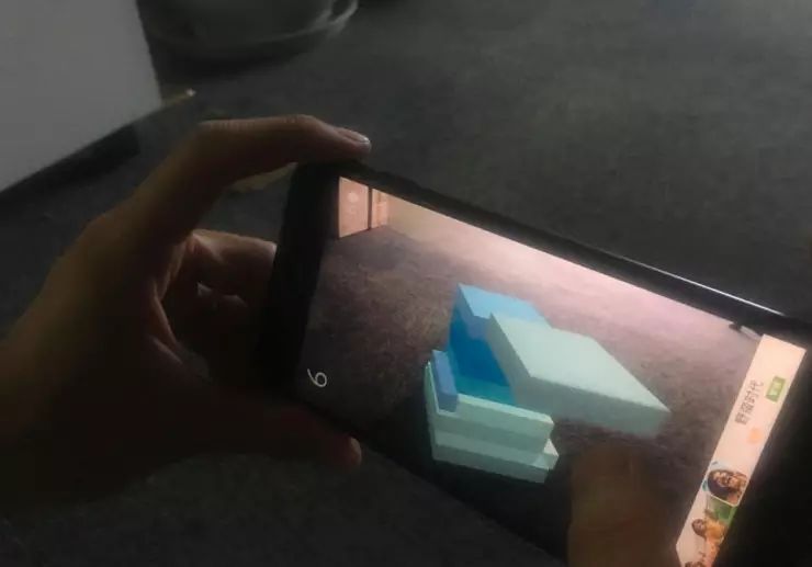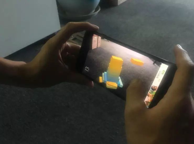首先,根据游戏提示,要找到一块带有花纹的桌子,平面识别后,游戏正式启动!就是下图的样子了。