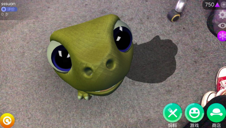还有 AR 版恐龙养成类游戏,突然召唤出一只小恐龙,还对你瞪着双大眼。
