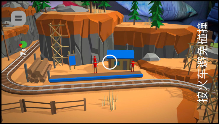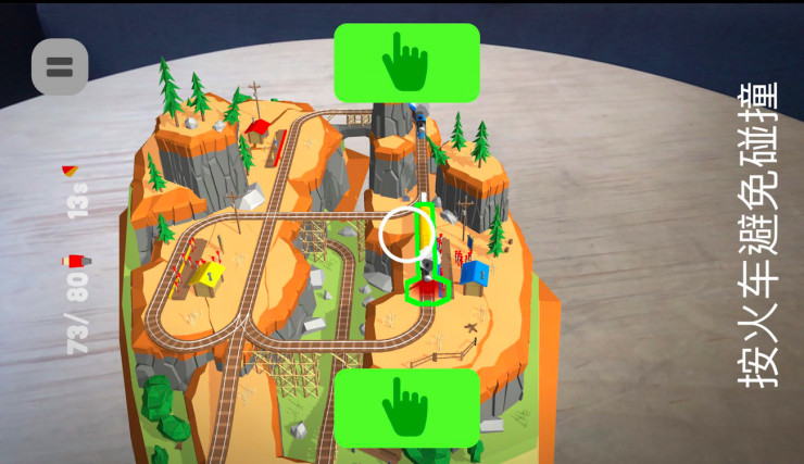 整体来说,游戏较为完整,有关卡,有场景变换,操作也是大家熟悉的点击屏幕,但是跟平面游戏相比,最大的不同是,你必须不停地来回走动,以随时查看火车行进情况,因为火车拐弯后,会被一些较高的物体遮挡。而且,最好不要让手机与游戏场景的距离拉的太远,这样就是俯视了,也没法好好玩游戏。