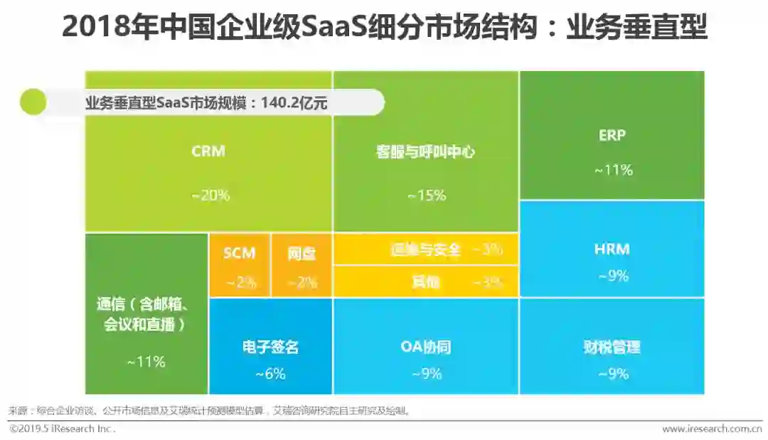 CRM、客服与呼叫中心、ERP和通信占业务垂直型市场六成