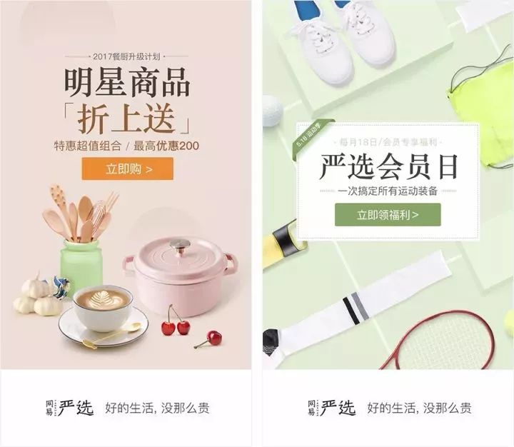 因为选购的商品其实也是用户体现审美的一种方式,所以户选择的一件商品,便是TA的一种偏好,一种生活方式,从而反应出来的一种个性消费。那么选择严选商品的用户,应该是注重生活品质,注重性价比的。那么设计师在打造场景的同时,需要更关注的是这个微环境是否能带给用户一种拥有的冲动。
