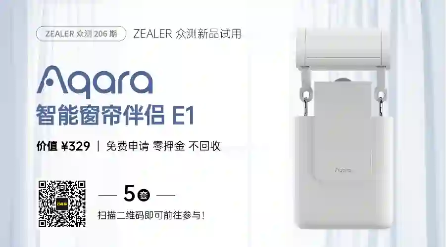 挂上它!让你家里的普通窗帘秒变智能!本期 ZEALER 众测新品——Aqara 智能窗帘伴侣 E1。挂上就能用,Siri 智能语音控制,开关窗帘任你指挥!支持 Zigbee 3.0,断网也能照常使用,更有 10 个月超长续航,省心省力又节能!扫上方二维码或戳左下角「阅读原文」即可申请免费试用。