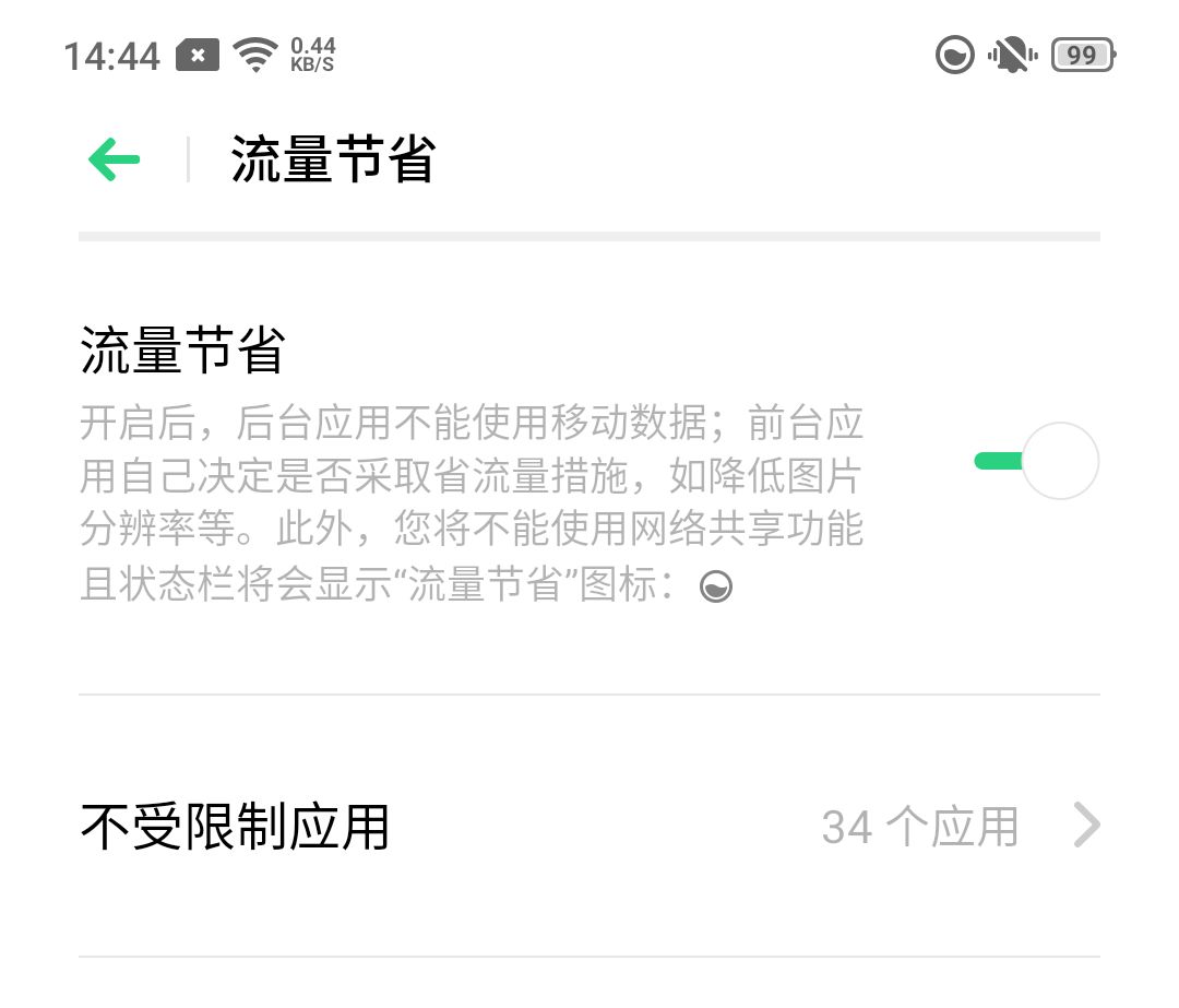 还有就是 ios 上的低数据模式开启后并不影响新消息的提醒,安卓却不行,你必须手动去把一些应用剔除在外。