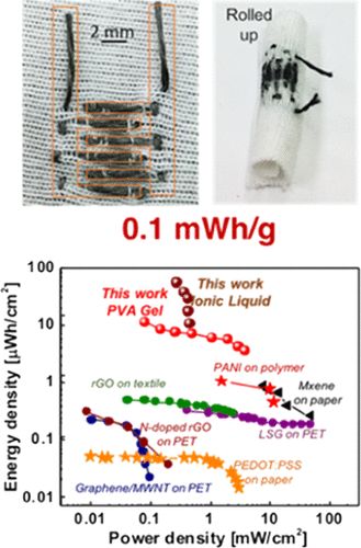 Andrew 与博士后研究员、论文第一作者 Lushuai Zhang 以及化学工程专业的研究生 Wesley Viola 指出,超级电容是可穿戴的电荷存储电路的理想候选方案,因为它们天生就比电池具有更高的功率密度。