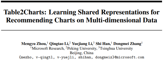 由微软研究院、北京大学和清华大学共同发表了一篇论文,文中提出的新型图表推荐框架 Table2Charts 可以高效地解决创建图表问题