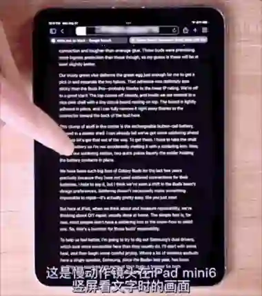 不过,iPad Air 也是 LCD 屏,并没有出现类似缺陷。用户认为,iPad mini 6 的“果冻屏”问题可能是内部设计造成的。拆解机构 iFixit 表示,由于 iPad mini 6 显示屏控制器垂直安装在设备内部,而 iPad Air 则是水平安装,这造成了 iPad mini 6 “果冻屏”问题可能更加突出。