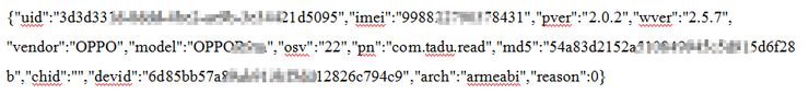 请求数据:包括uid、imei、sdk版本、手机厂商、型号、系统版本、应用包名、设备id、设备指令集等内容