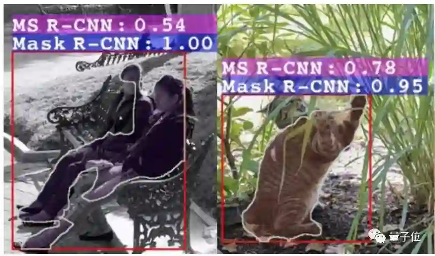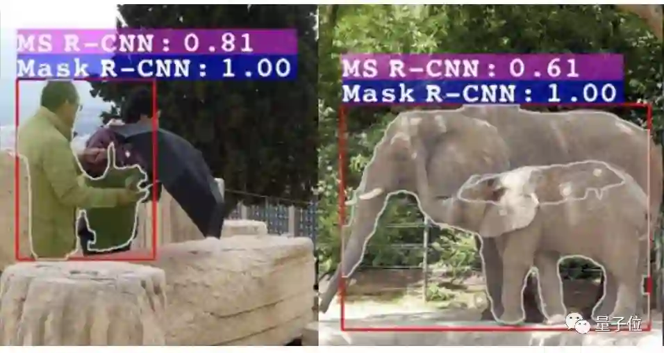 在COCO 2017验证集上,MS R-CNN的得分也优于Mask R-CNN: