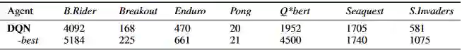 同样,这是一个不公平的比较,因为 DQN 没有执行任何搜索,蒙特卡洛树搜索会执行基于真实世界模型(Atari 模拟器)的搜索。然而,有时候我们并不需要关心比较是否公平,有时候我们只是想让它起作用。如果你对 UCT 的全面评估感兴趣,你可以参考原始论文「The Arcade Learning Environment: An Evaluation Platform for General Agents」。