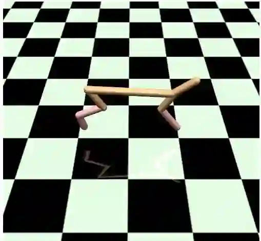 这里的目标是学习一个奔跑的步态。奖励函数是 HalfCheetah 的速度。