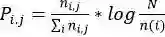 为词语i在整个语料库中出现的总次数,N是语料库中文章的总次数。向量
