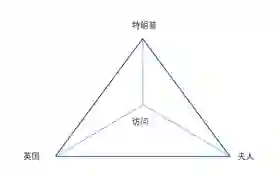 将第一步提取出的事件触发词、事件元素(名实体、时间、地点以及有意义的补语状语等)作为节点,连接成一个具有中心节点的封闭多边形。比如句子“特朗普携夫人访问英国。”中提取出事件元素“特朗普”、“夫人”、“英国”,提取出事件触发词“访问”,首先将“访问”与“特朗普”、“夫人”、“英国”分别相连,再将“特朗普”、“夫人”、“英国”按照在句子中出现的先后顺序依次连接起来。构成图形如下: