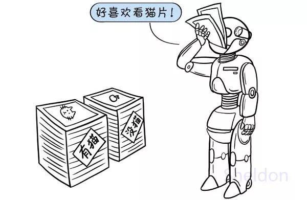 比方说,你想教计算机如何识别一张照片上的动物是不是猫。你先拿出几十万张动物的照片,凡是有猫的,你就告诉计算机有猫;凡是没有猫的,你就告诉计算机没有猫。也就是说,你预先给计算机要学习的数据进行了分类。这相当于你监督了计算机的学习过程。