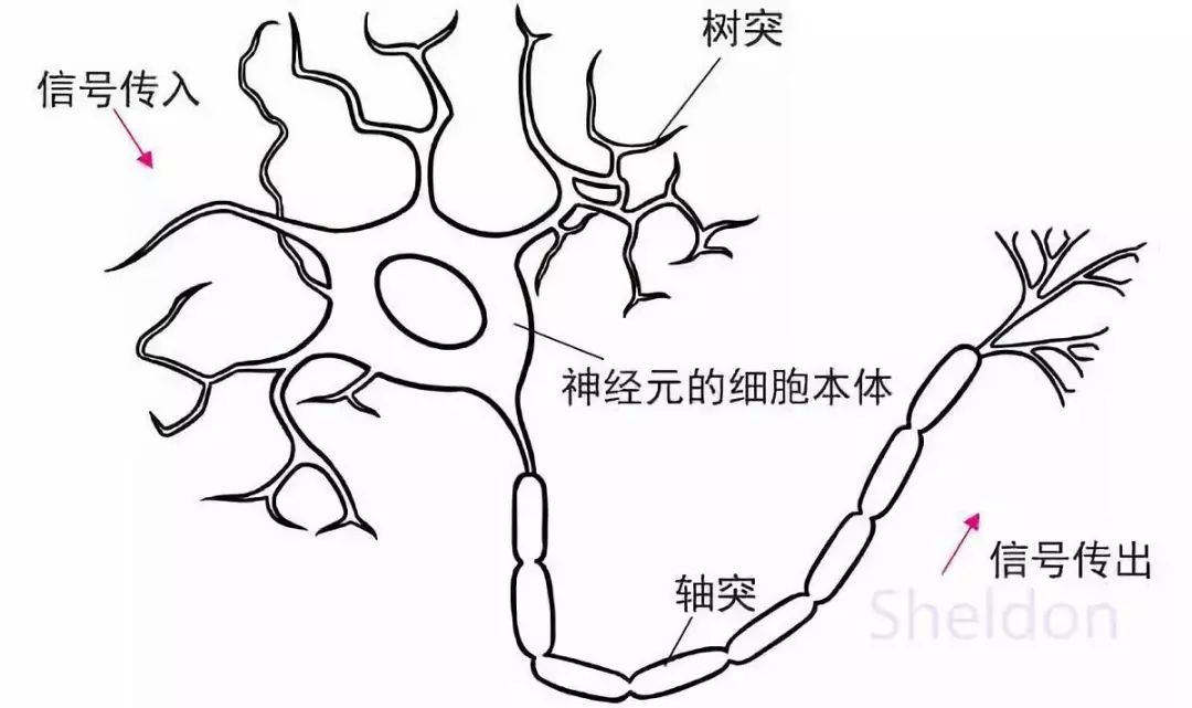 人类的大脑是一个复杂的神经网络。它的组成单元是神经元。每一个神经元看起来很简单,它们先接收上一个神经细胞的电信号刺激,再向下一个神经细胞发出电信号刺激。