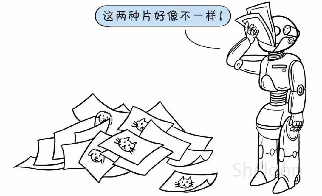 经过一段监督学习的过程之后,计算机就能把你输入的照片按照相似性分成两个大类(也就是区分了猫和狗)。只不过计算机只是从数字照片的数学特征的角度进行了分类,而不是从动物学的角度进行了分类。