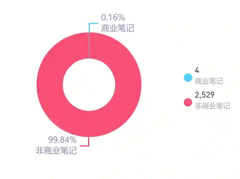 数据还显示,在2020年9月以来统计到的2500余条新疆奶相关笔记中,非商业笔记,也就是用户自发笔记占比99.84%,被平台标记为商业笔记的仅有4篇,占比0.16%。不过这并不意味着我们看到的新疆奶测评笔记都是用户自发分享,其中必然还存在未通过小红书官方平台达成的推广合作,这种通常不会被数据分析平台统计在内。但是,可以肯定的是,大多数人对于新疆奶的测评和种草是自发行为,这是消费者主动为之的一场支持行动。