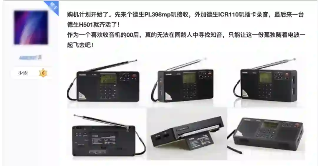 在「收音机爱好者」吧里,现在依然能找到一批喜爱收音机的00后聚集在一起,看看谁又有新机入手,羡慕一波的同时,送上入机恭喜。
