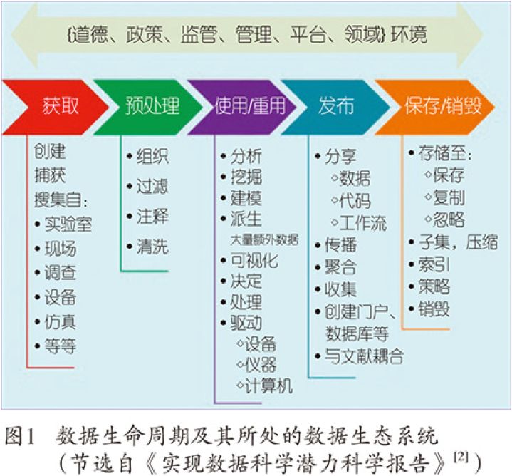 数据从来就不存在于真空中。与生物有机体一样,数据具有生命周期,从诞生开始经历活跃的一生直到“永恒”或某种形式的消亡。它也像活着的智能有机体一样,生活在一个拥有物质支持、社交背景和生存意义的环境中。数据生命周期对于理解充分利用数据所带来的机遇和挑战至关重要。从图1可以了解数据生命周期的基本组成部分。