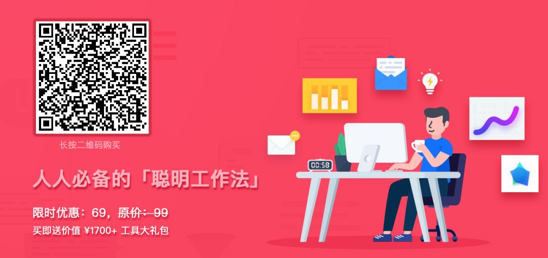 以上福利,覆盖了团队协作和个人效率的相关需求,跟课程内容也有紧密关联,如果你正好需要他们,就赶快订购我们的聪明工作法课程吧,目前正在特价促销中。