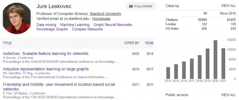 ▲ 图1 Jure Leskovec的Google Scholar页面