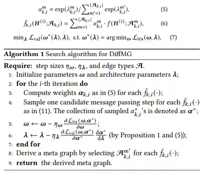 无法很好地反映每个子模型单独训练时的好坏。因此,我们提出了一个基于贪心策略的搜索算法,每轮迭代只从候选的信息传播操作中挑选一个参与计算,这样一方面提高了搜索效率,同时也使得优化后的超网络能更好地反映子模型的表现。算法的详细推导请参看原论文。