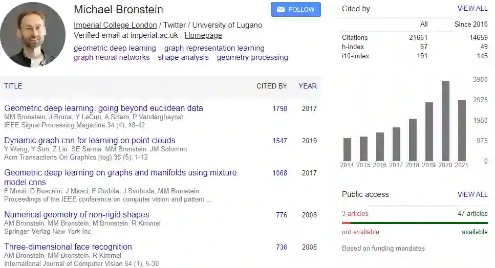 ▲ 图2 Michael Bronstein的Google Scholar页面