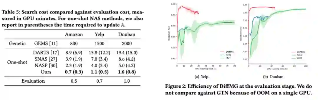 我们定义的搜索空间很大,为了高效地进行搜索,我们进一步提出了一个创新的可微搜索算法,使得搜索所需的时间与训练一个单独的 GNN 相当。我们在若干个真实的异质数据集上测评了我们的方法在节点分类(Node Classification)任务和推荐(Recommendation)任务中的表现,实验结果表明,相比于已有的为异质图设计的 GNNs,我们的方法可以在实现更好效果的同时保持高效率。
