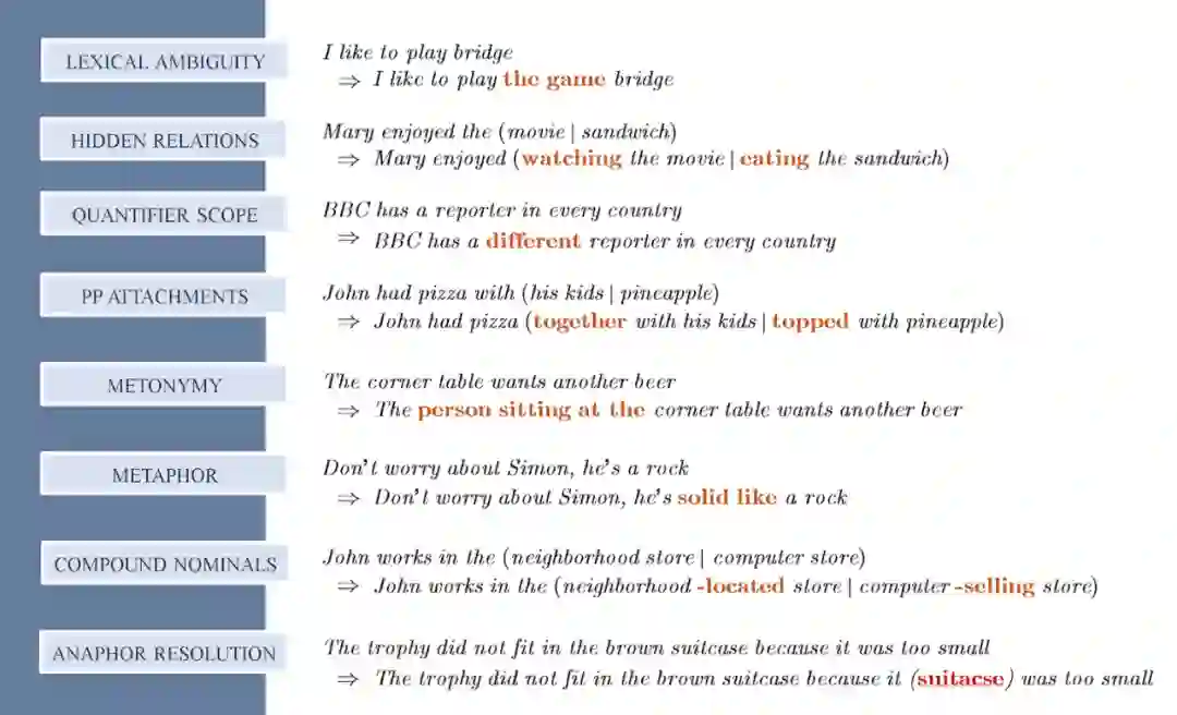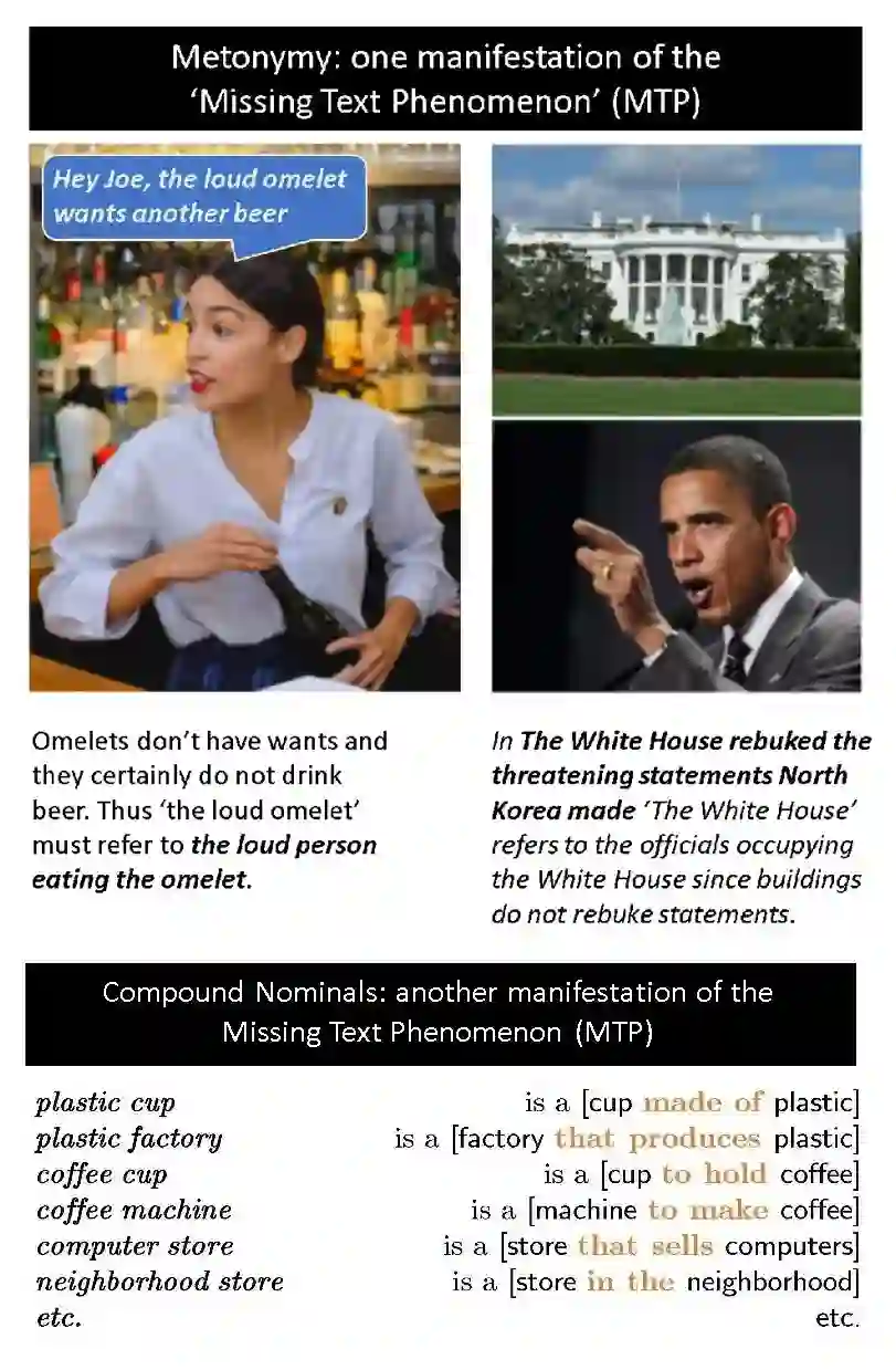 上述示例表明,NLU 的挑战在于发现缺失信息,并隐含地认为这些信息是共享背景知识。下图 3 进一步解释了缺失文本现象: