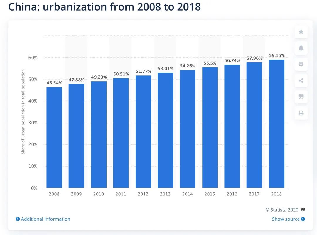 中印2008-2018年城镇化进度