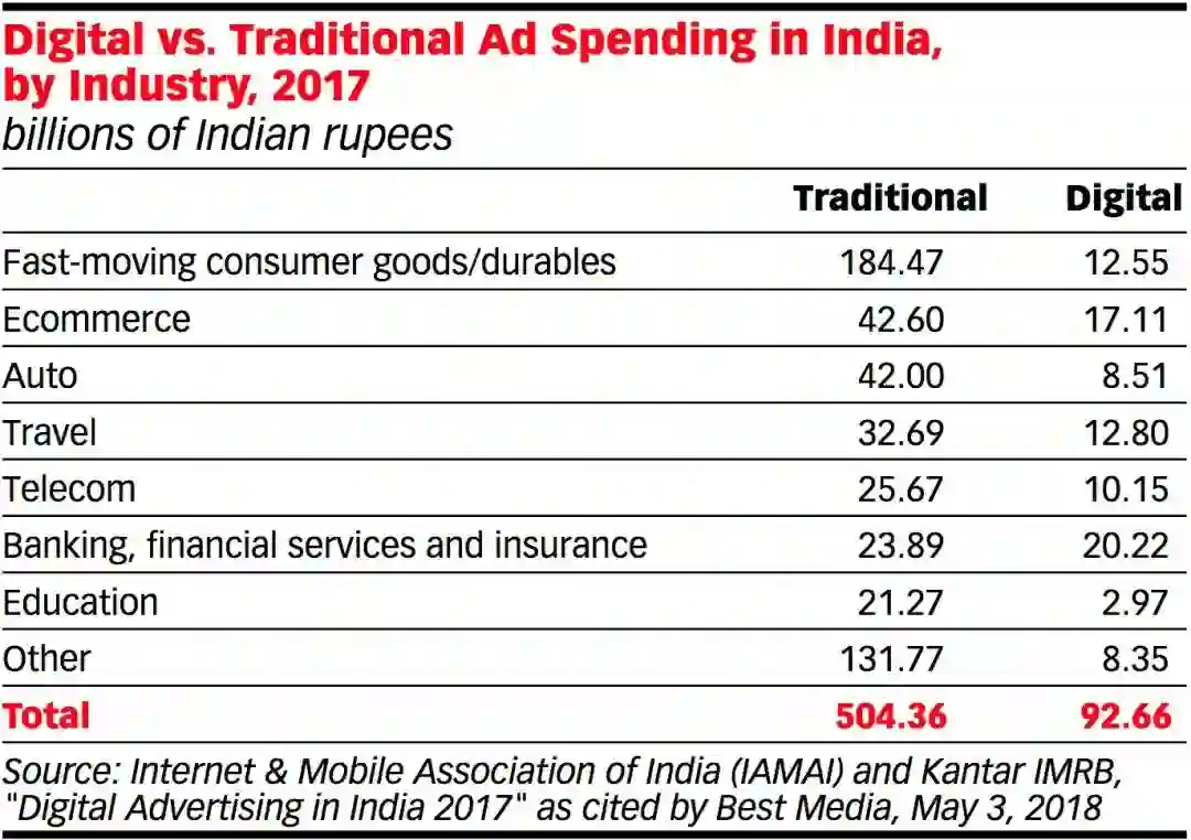 2017年是印度智能机的一个关键节点,然而同期印度大多数行业的广告预算还是倾向于传统媒体,在移动广告市场并没有表现出爆发式的增长。