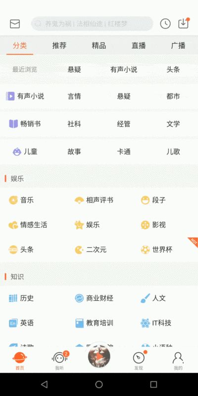 喜马拉雅APP分类页面原图: