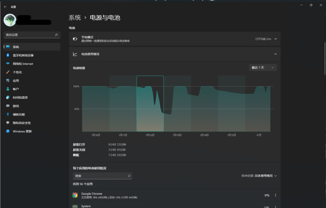 电池续航情况的详细信息可以追踪