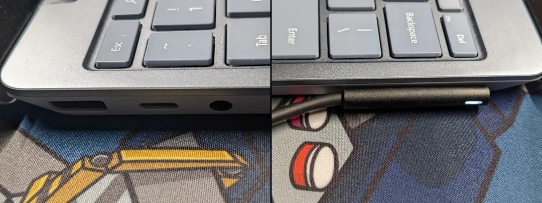 左:USB-A、USB-C、3.5mm 耳机插口;右:Surface Connector